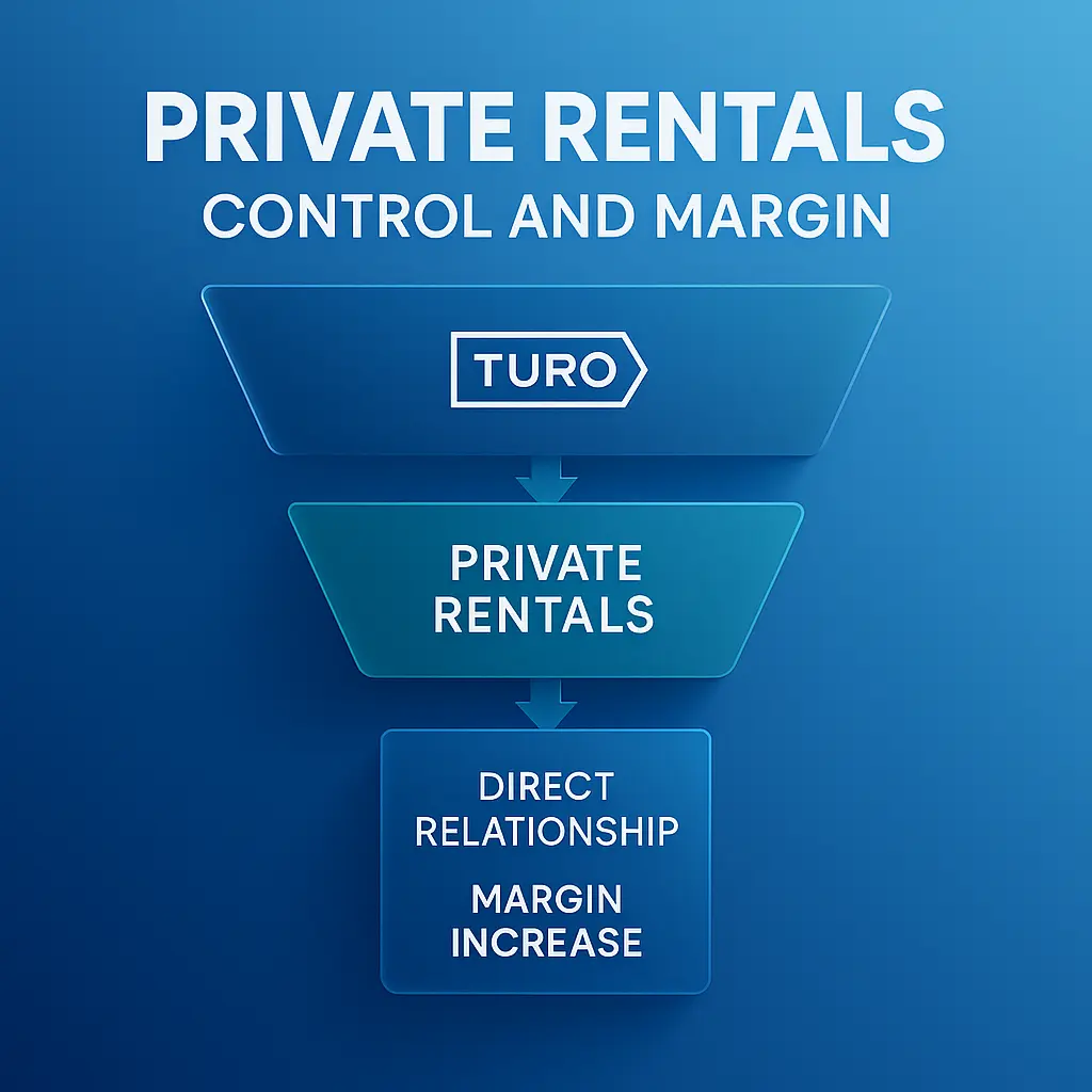 It is a framework that combines Turo for reach Private Rentals for control and Car Sales for cash recovery. Together they diversify demand raise margins and keep inventory fresh. - Why not stay only on Turo