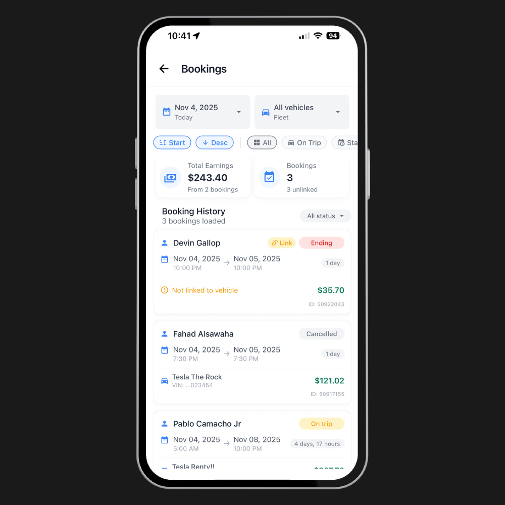 FleetBold automatically integrates your Turo bookings into the dashboard.